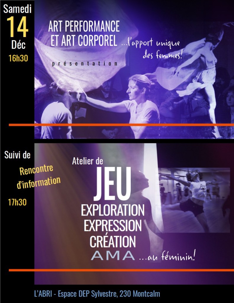 Dans le cadre de la préparation de l’atelier de jeu Ama, nous vous invitons à une présentation spéciale sur l’apport unique des femmes dans l’élaboration d’une créativité artistique plus ancrée dans le corps!