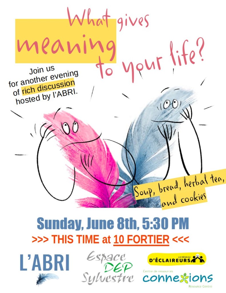 Une autre rencontre spéciale de l’ABRI spécialement pour nos amis anglophones ainsi que pour les nouveaux arrivants moins familiers avec le français. Bienvenue à tout le monde! Les francophones bilingues sont également les bienvenus!