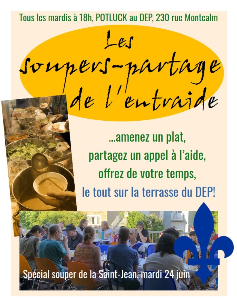 Rejoignez des membres de l’équipe de l’ABRI au souper-partage du DEP sur la terrasse!