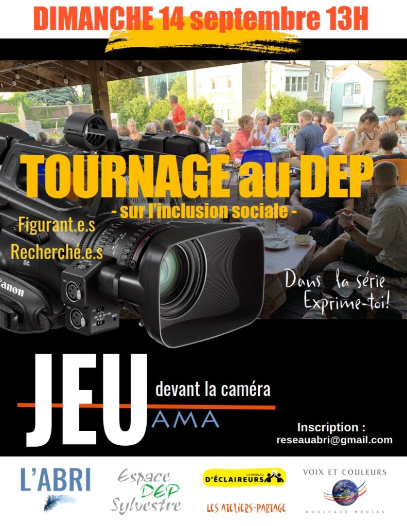 Dimanche 14 septembre, venez participer à notre grand tournage sur l’inclusion sociale au DEP!