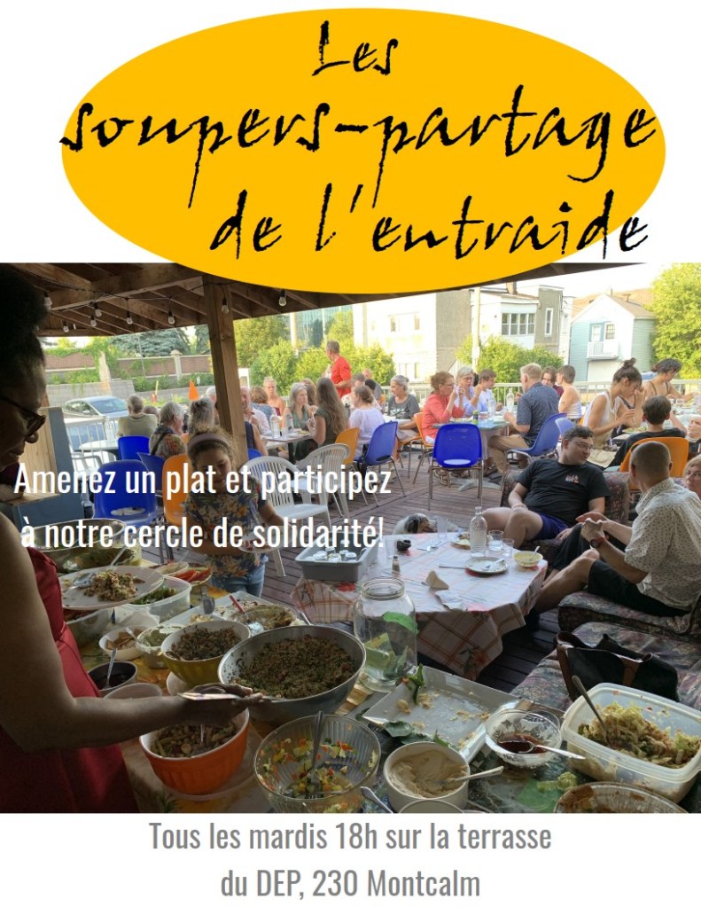 Tous les mardis à 18h, L’ABRI participe aux soupers-partage de l’entraide
