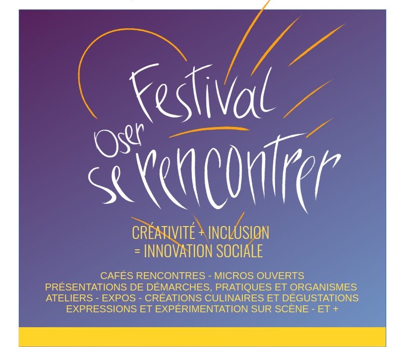 Il s’agit d’un festival hors norme, entièrement axé sur la rencontre citoyenne, sous le signe de la créativité et de l’inclusion, pour célébrer la synergie culturelle et l’innovation sociale! C’est rare qu’un festival soit avant tout configuré pour favoriser les rencontres individuelles. et de plus en invitant plus spécifiquement les intervenants en créativité et ceux en inclusion sociale à partager entre eux!