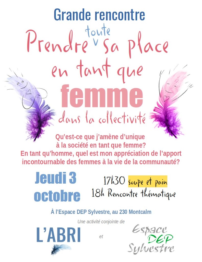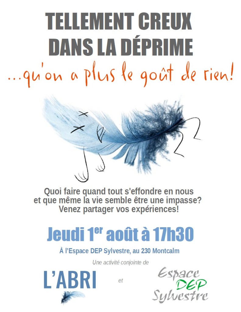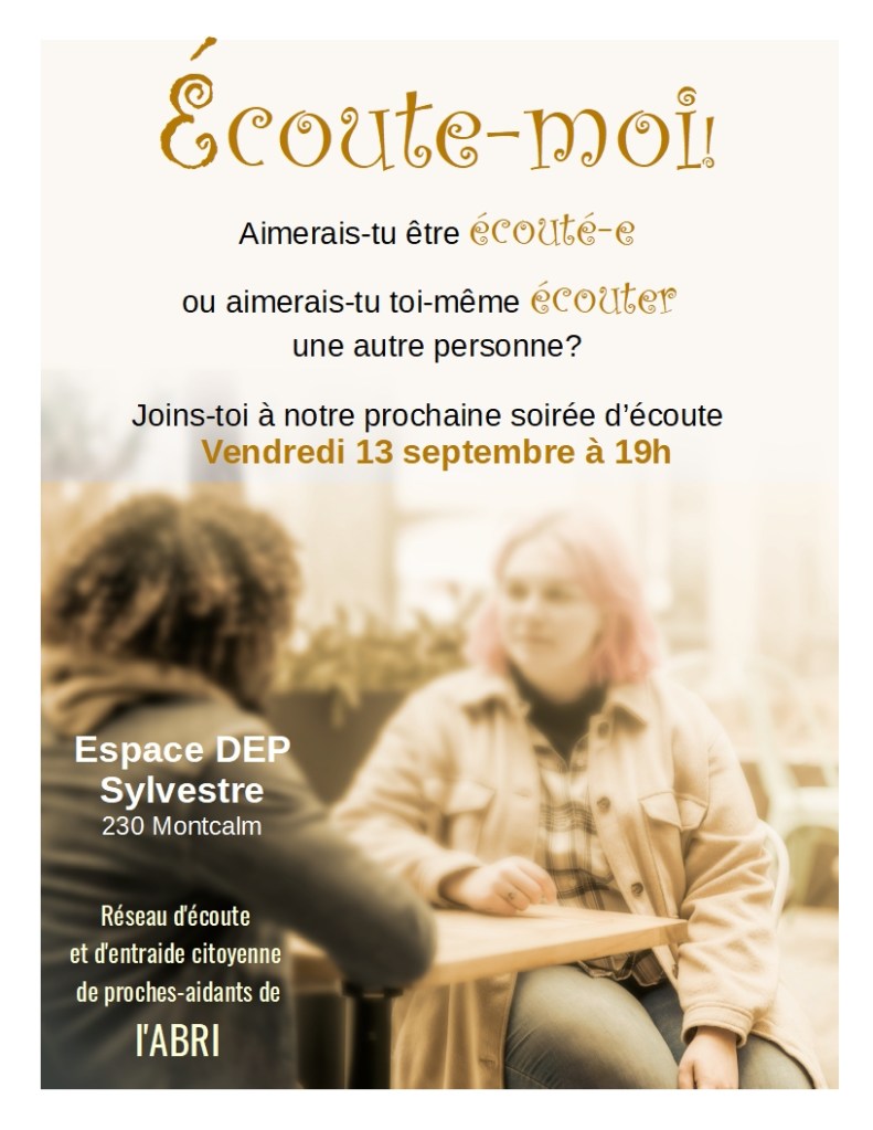 Des initiatives, telles les soirées « Écoute attentive » et « Écoute-moi! », ont pour mission de bâtir un réseau d’écoute mutuelle à l’Espace DEP Sylvestre.